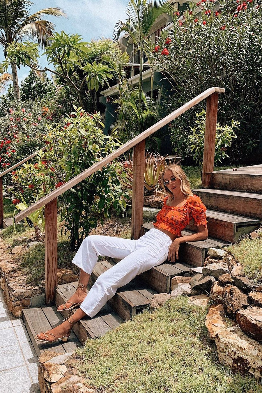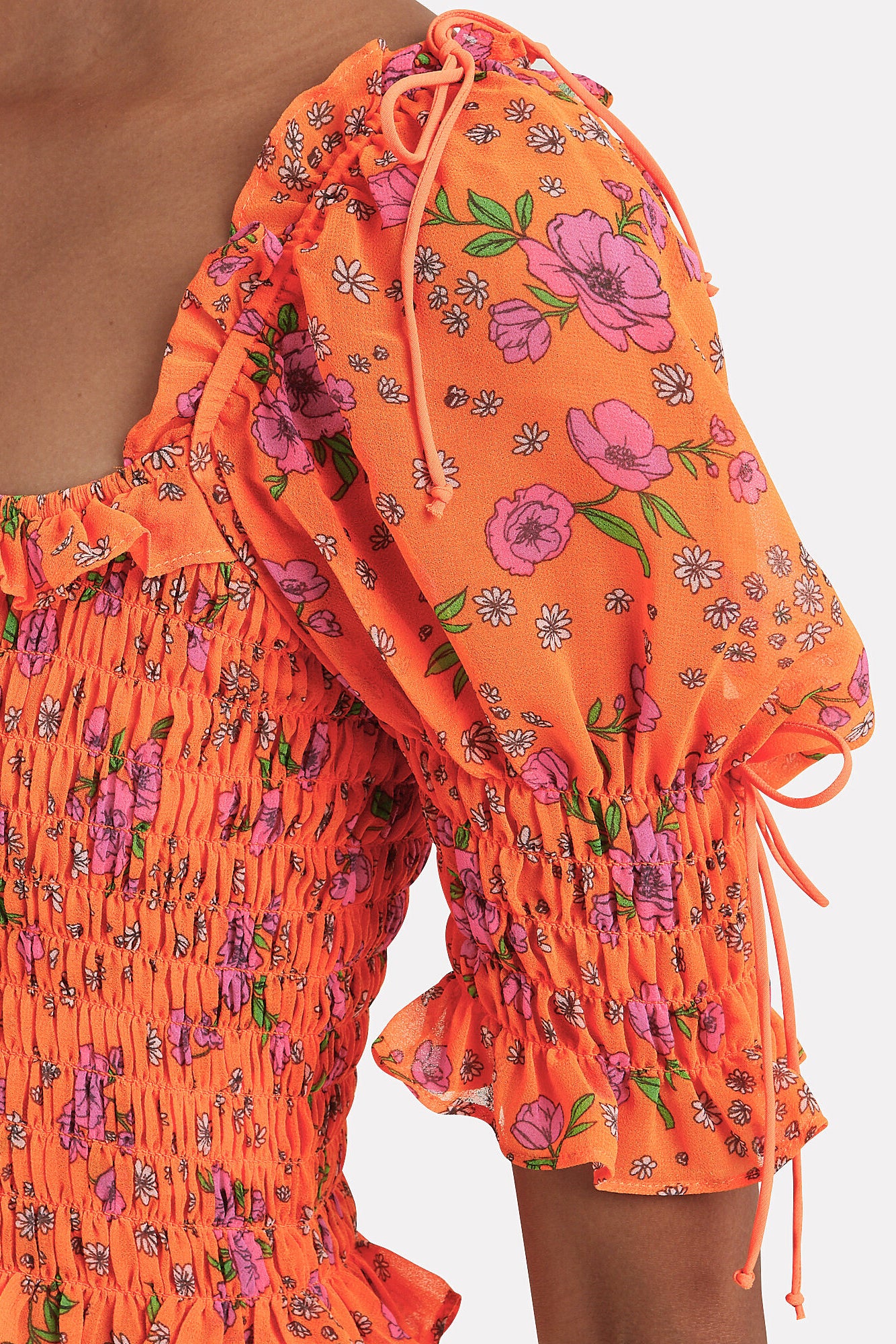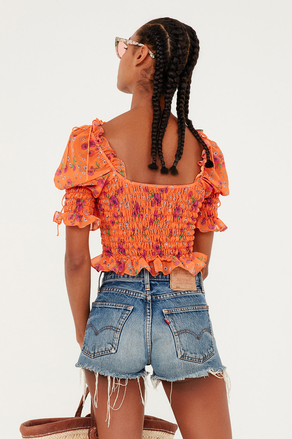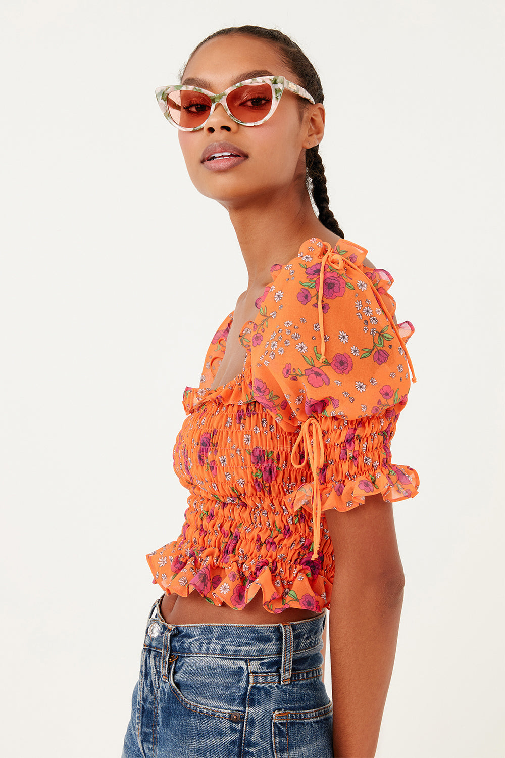A festive summer top combining the best of color combinations, the Scarlett top is for the free-spirited women. It has elastic gathers throughout the bodice and on the sleeves, which give it a skinny fit. The square neckline and sleeves have frills with straps. It has a really fun personality that will bring out the fun side of you.