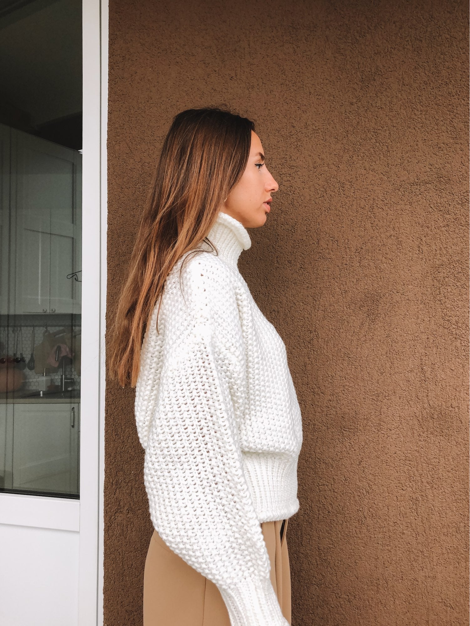 Every girl needs a big comfy sweater for the fall and this is it. With a high-quality construction and a contemporary design, it’s all about feeling warm and cozy while also looking fabulous. This pullover features a thick yarn knitting with wide ribbed hem, cuffs, and high neck. With dropped shoulder seams and loose sleeves, it has an oversized look that’s all the rage these days.